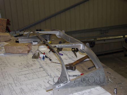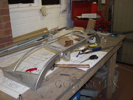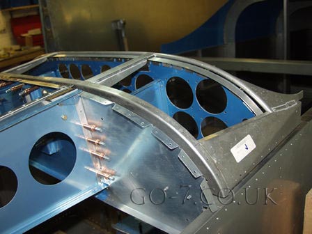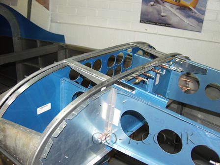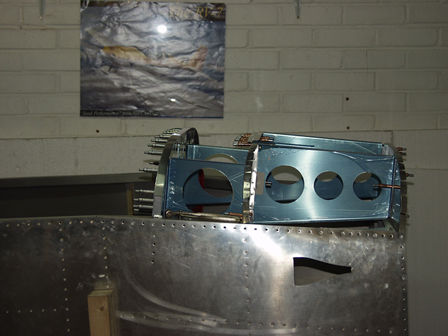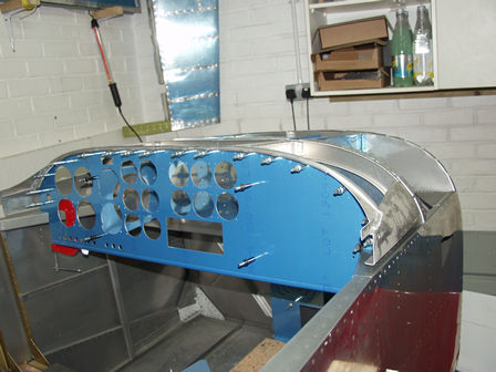 Front section of canopy fitted - checking alignment of hinge boxes.