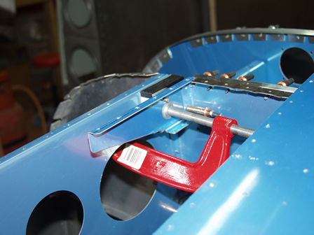 Here I have aligned and and clamped the hinge brackets ready to drill mount holes. I have had the skin on to check