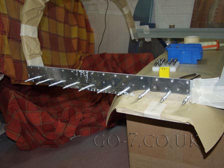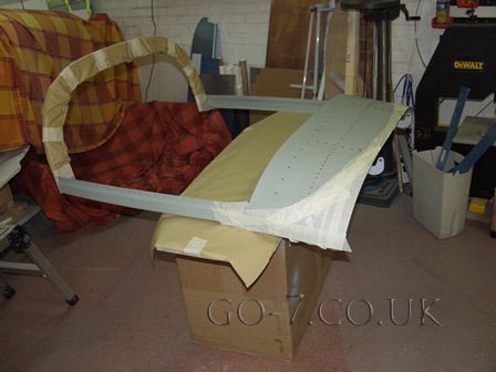 Continued work on canopy, riveting on side skirts ready for painting.