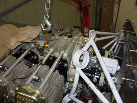 back to the workshop and fitted some parts to the rear of the engine then fitted the engine to the frame (the