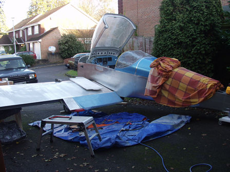 and fit the left wing. I wanted to check fuel line positions and the left flap. I tidied the workshop and fitted everything back