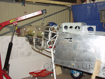 Riveted center section of instrument sub-panel in place, and refitted engine.