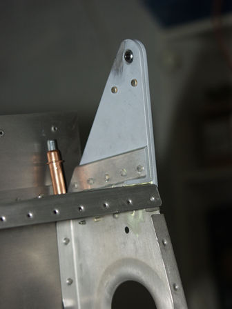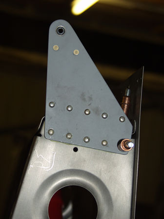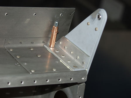 Fixing aileron hinge bracket to wing. Notice end rivet is