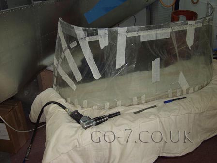 Here I have marked the rear window for final trimming. I countersunk the holes before