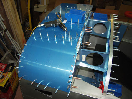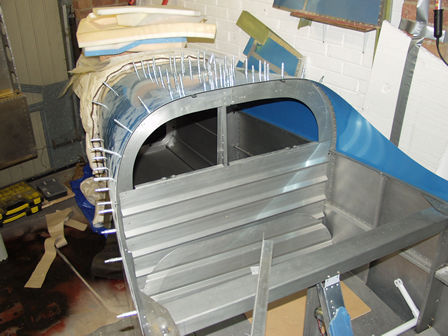 Fitting top skins to rear and front decks.