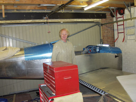 I had levelled the fuselage and fitted the right wing. John arrived and first we