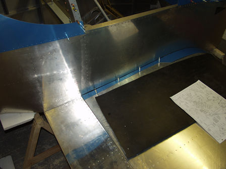 Cut hole in fuse floor for the flap control rod. Checked