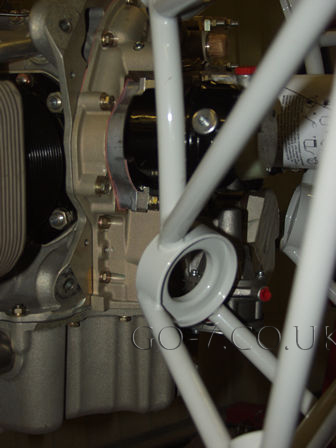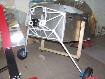 On Monday the engine arrived from Jade Air after examining I have offered up the engine to the frame to see were the controls may need to come through the firewall. All seems well so I have decided to put the fuse on it's wheels.