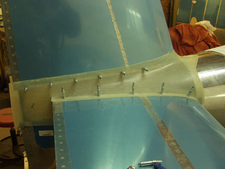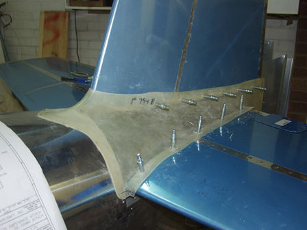 Back on the project after a break. I now have the #6 screw countersink nut plates, so I fitted them for the inspection covers. Continued work on the HS fairing. This is made from fiberglass - it's not a great fit. it's going to take work to make it look good.