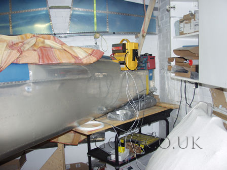 Continued work on the wiring - routed wires for rear strobe and nav light Organised wiring around spar and routed wing nav lights and landing light. Fitted static line in rear fuse to intrument panel. Fitted elevator trim wire in rear fuse. Fitted connectors to aileron trim servo. Started work on fitting stobe power pack.